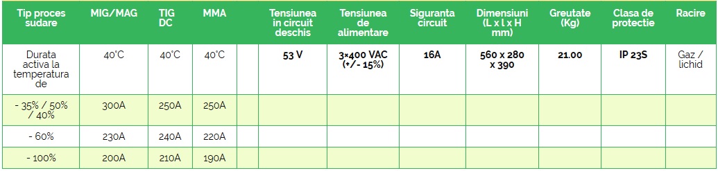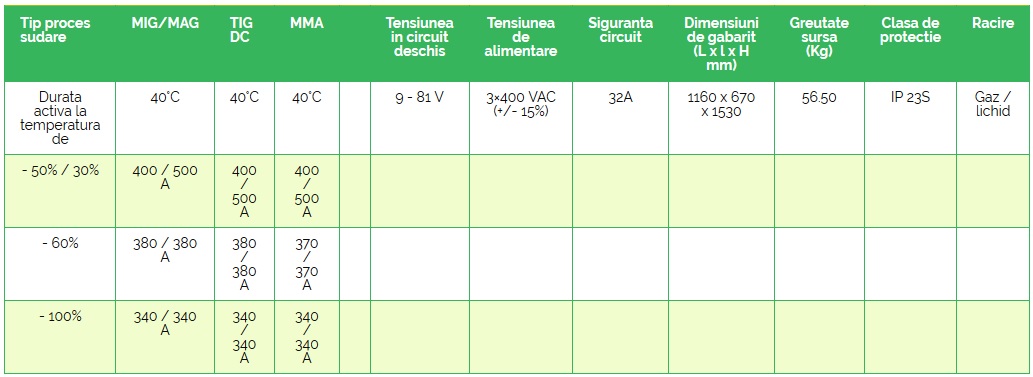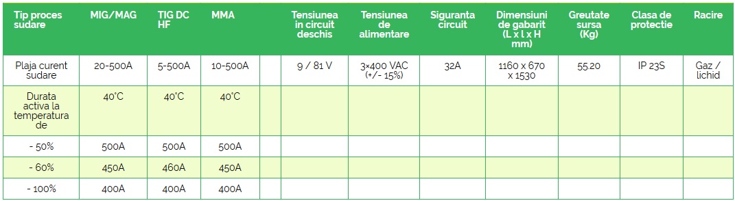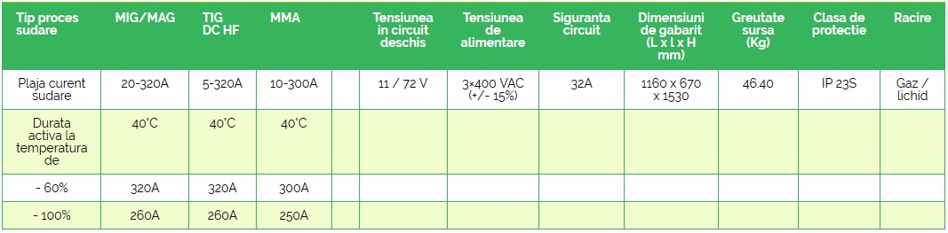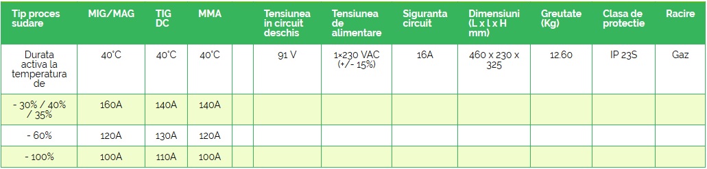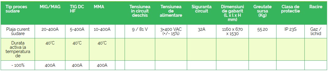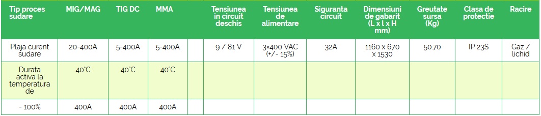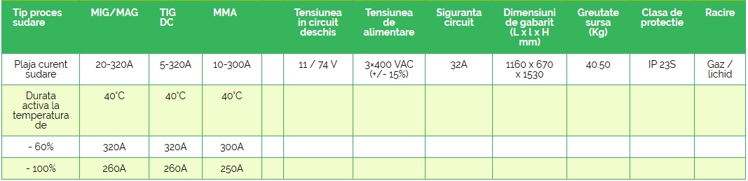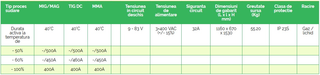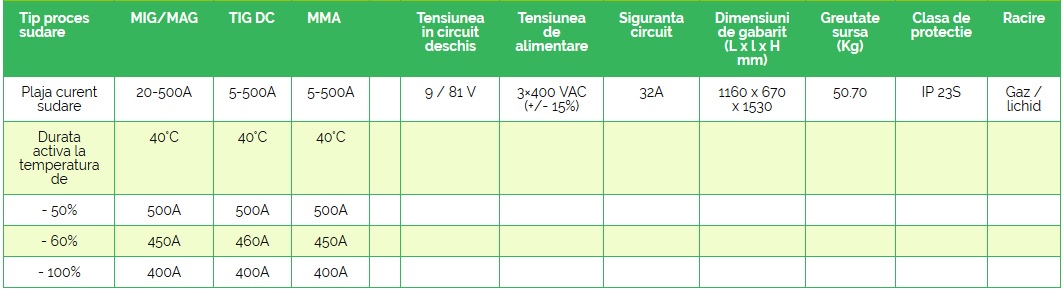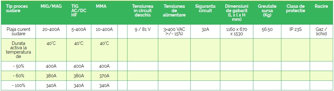 - Repetabilitatea ridicată a proceselor de sudare este posibilă datorită: utilizării unor microprocesoare performante pentru gestiunea datelor, tehnologiei invertor, panoului digital cu interfață prietenoasă, curbelor sinergice și capacității de memorare a parametrilor definiți de utilizator.